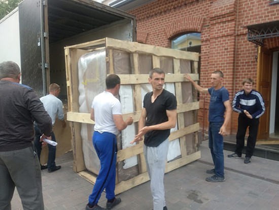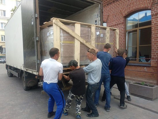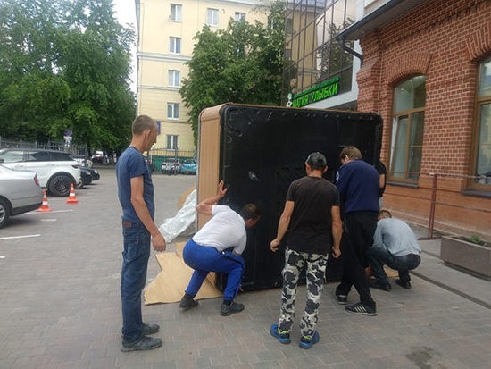 Команда состояла из восьми крепких человек, ведь джакузи этой модели отнюдь не легкий, он весит 400 кг. Когда дверь фуры распахнулась, и показались ее габариты, на лица сотрудников упала мрачная тень, которая означала предчувствие тяжелой работы. |