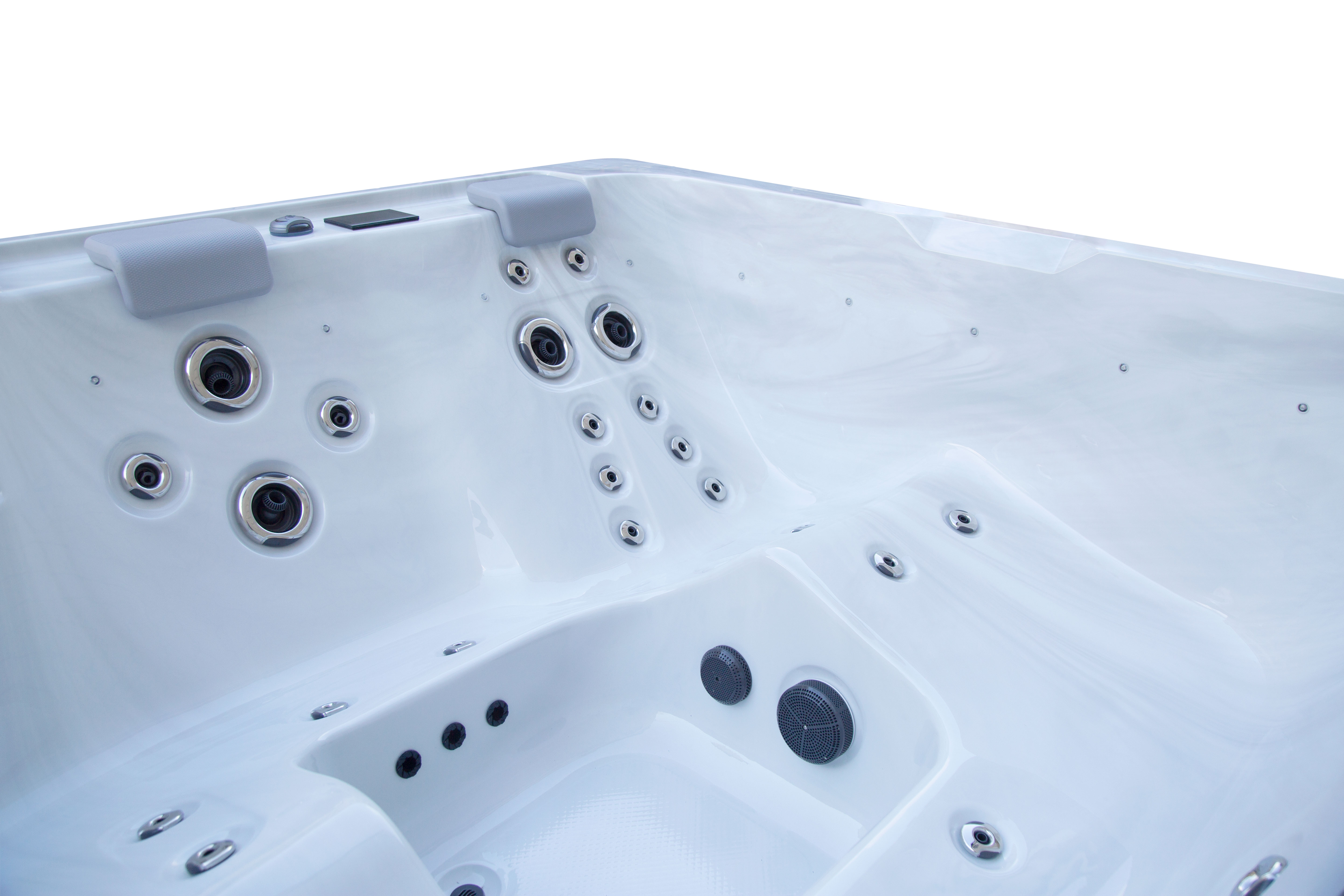Благодаря мощному нагревателю 3 кВт и двум водяным насосам по 2,2 кВт каждый, Liv быстро достигает рабочей температуры и обеспечивает интенсивный массаж, оставаясь экономичным в эксплуатации.