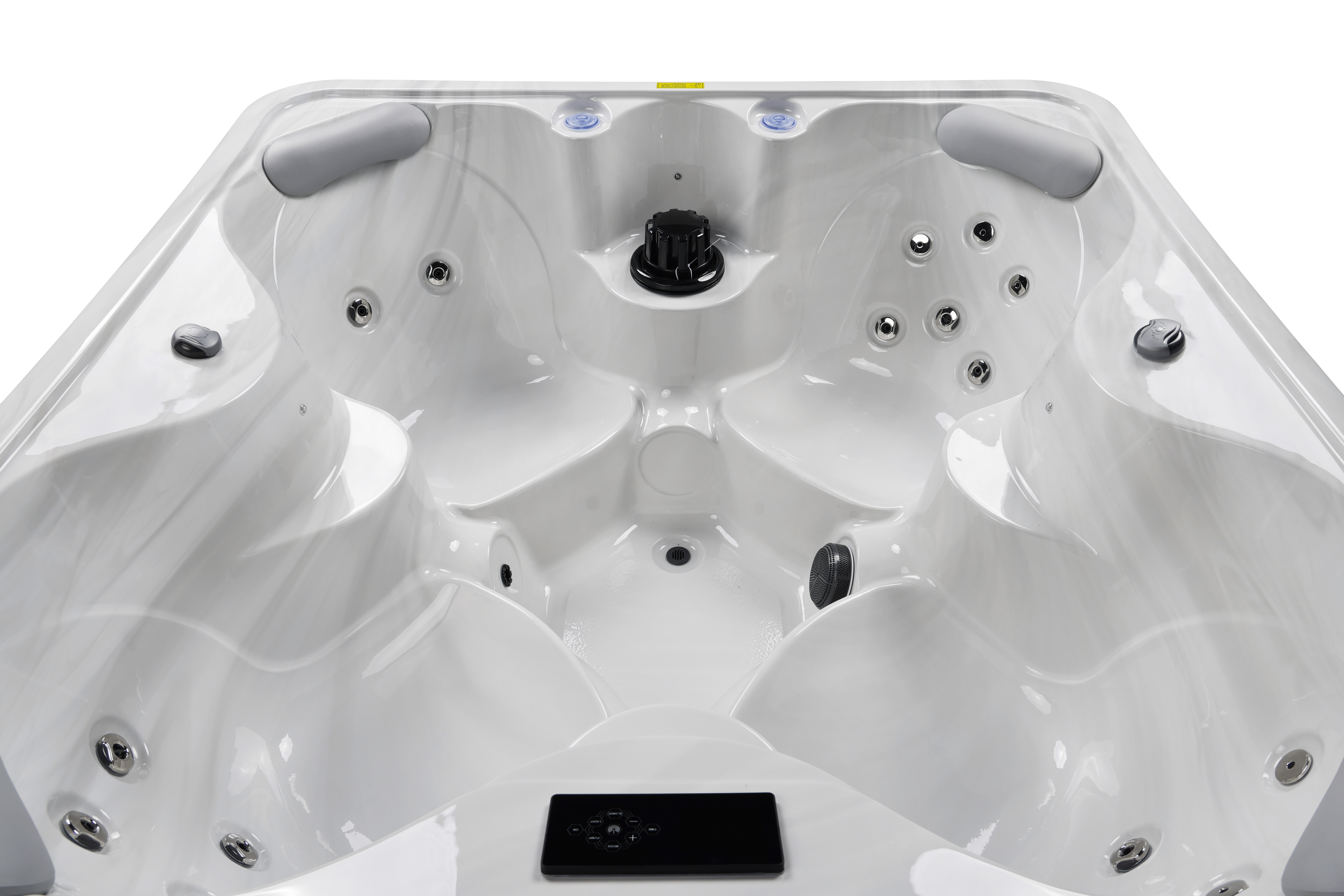 NordicSpa Nyerd с размером чаши 1,8 x 1,8 м идеально подходит для установки как в помещении, так и на улице. Компактная квадратная форма с четырьмя эргономичными подголовниками комфортно вмещает до четырех человек, создавая уютную атмосферу для отдыха и общения.
