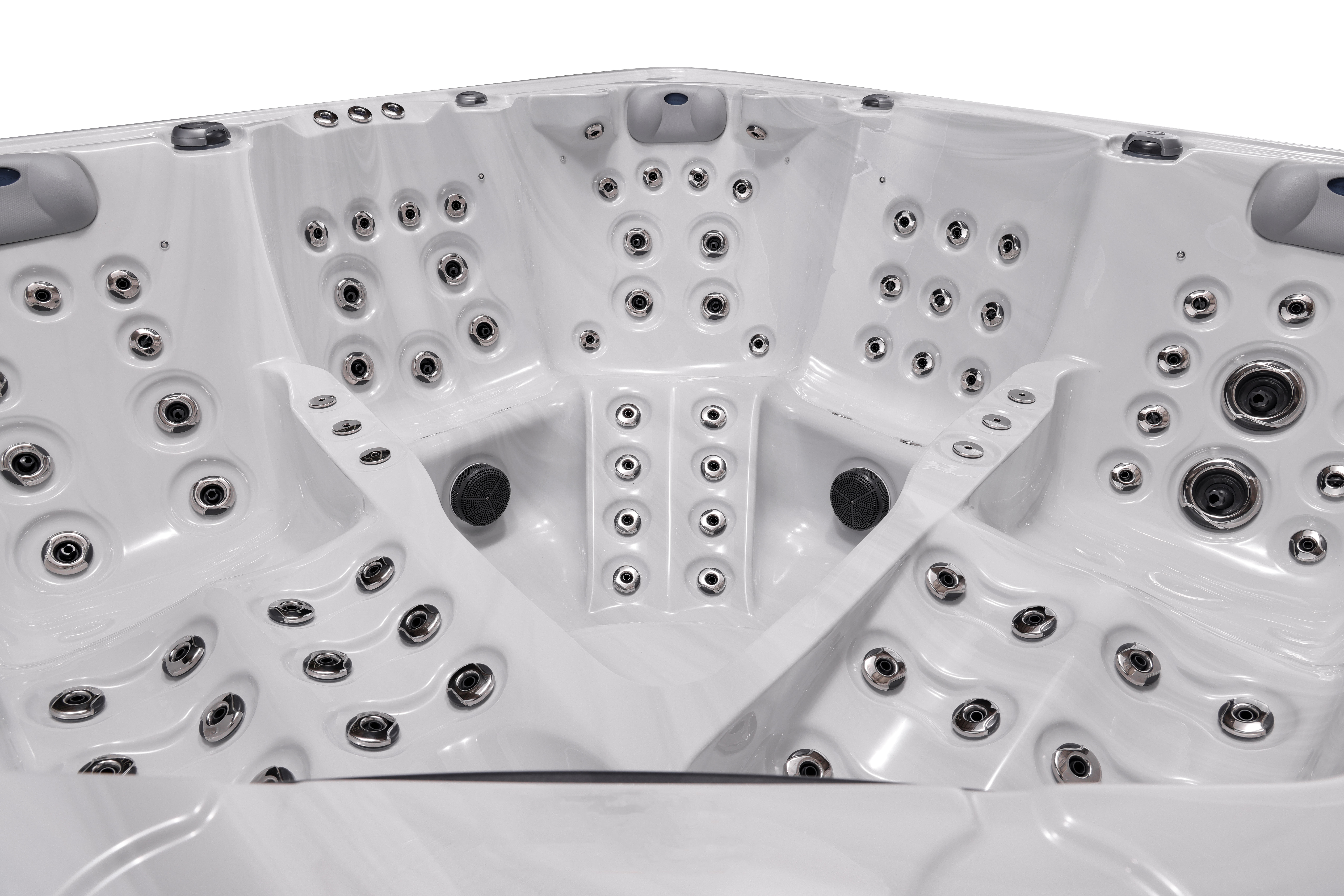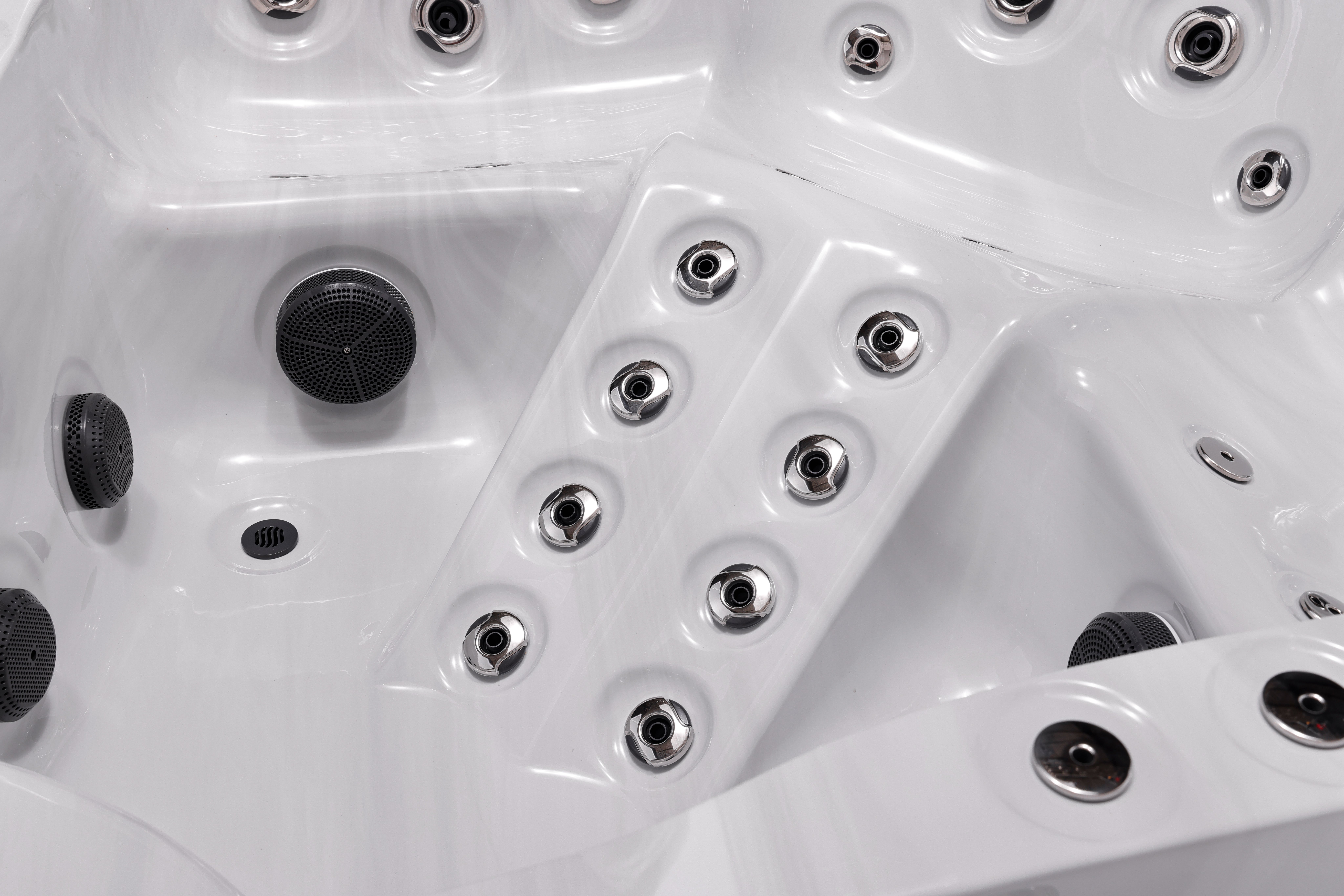 Tyur - это вершина инженерной мысли с безупречной эргономикой и самой мощной системой гидромассажа в линейке. 113 воздушно-водяных форсунок обеспечивают непревзойденный комфорт и эффективное расслабление всех групп мышц. Опциональные аэро-форсунки (10 шт.) дополнят ваш опыт нежным воздушным массажем, создавая идеальные условия для многоуровневого релакса. Три мощных водяных насоса по 2,2 кВт каждый гарантируют интенсивный и равномерный массаж высочайшего уровня.