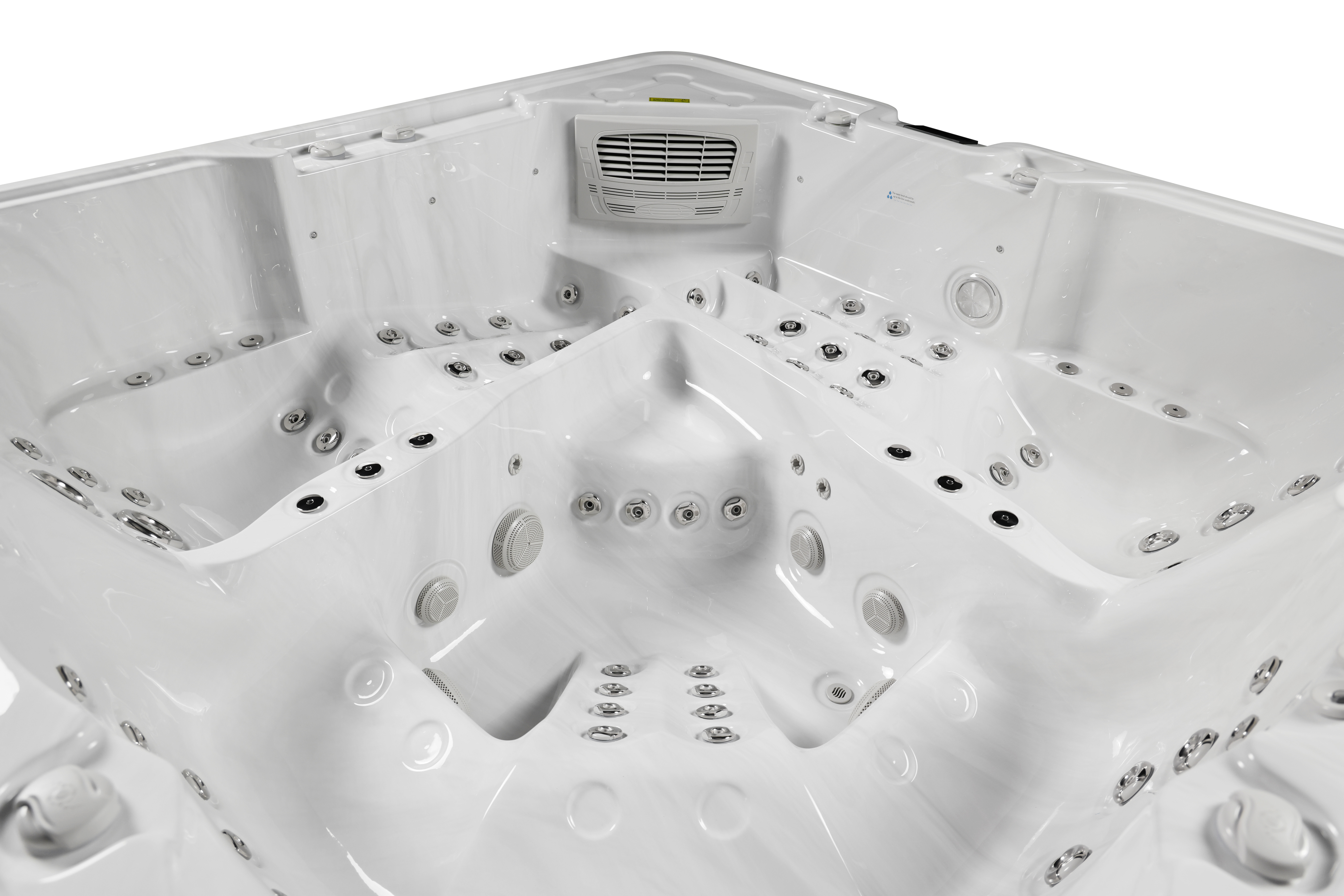 NordicSpa Tyur с размером чаши 2,25 x 2,25 м идеально подходит для установки как в помещении, так и на улице. Просторная квадратная чаша с тремя эргономичными подголовниками комфортно вмещает до пяти человек, создавая королевские условия для полноценного отдыха и общения.