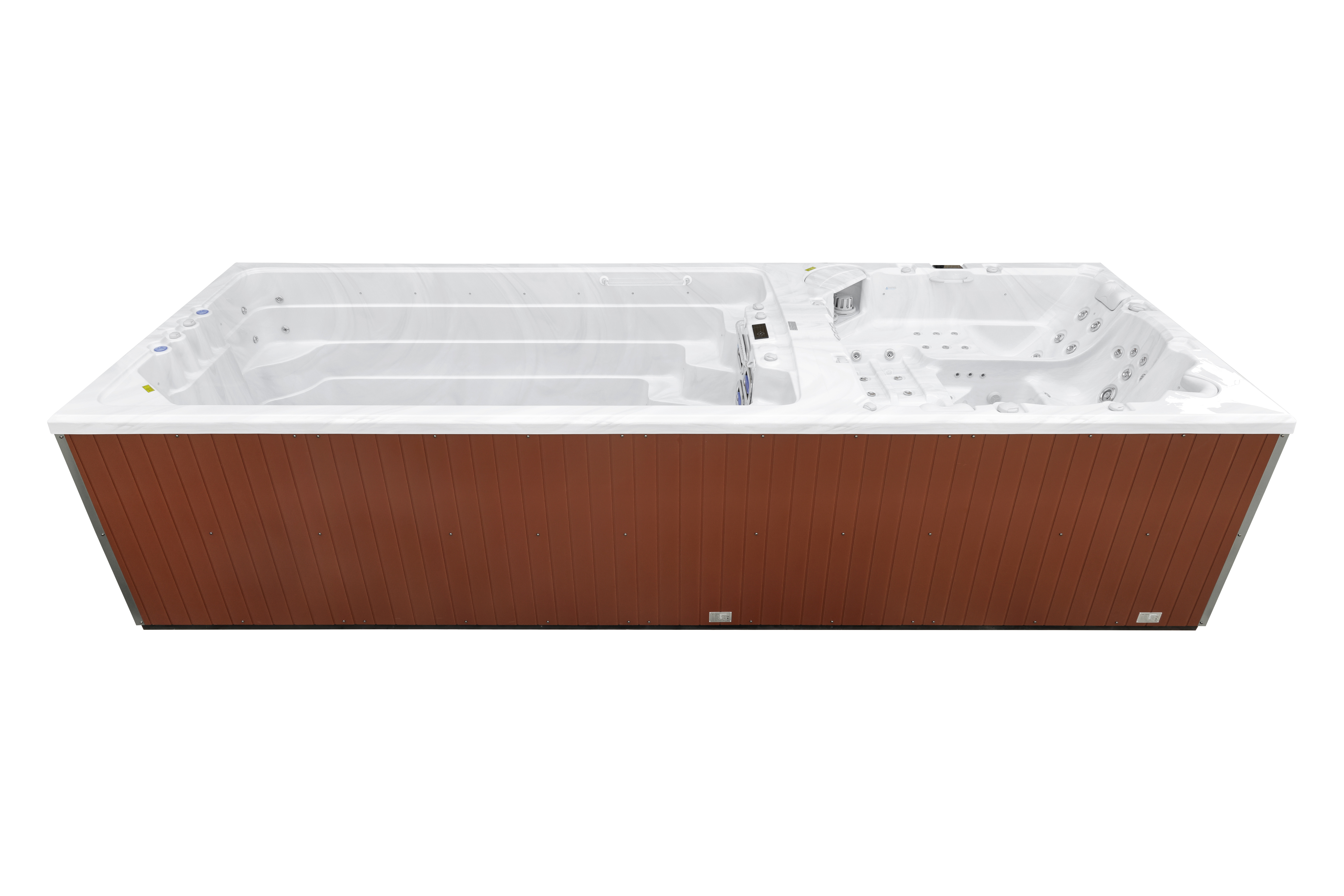 Четыре мощных насоса (два по 2,2 кВт, один 2,2 кВт и один 2,9 кВт) работают в разных зонах, обеспечивая интенсивный массаж 92 форсунками. Уникальная конфигурация гарантирует мощные водные потоки для эффективного массажа и комфортного плавания.
