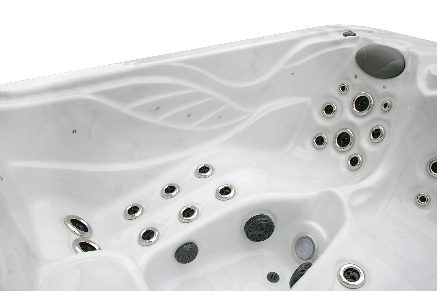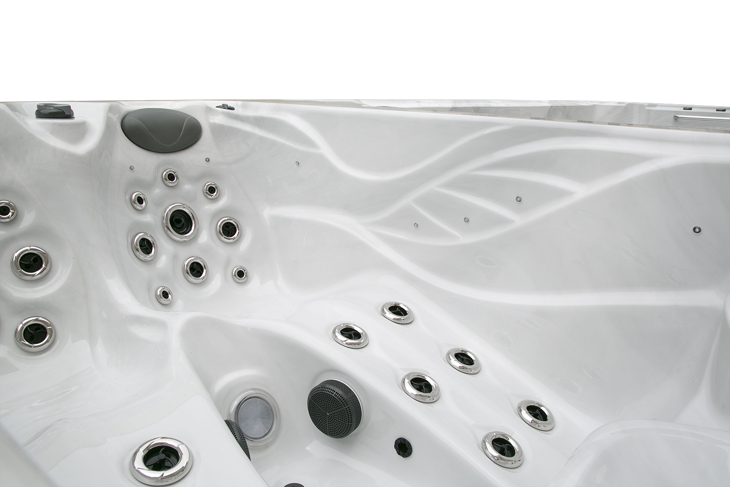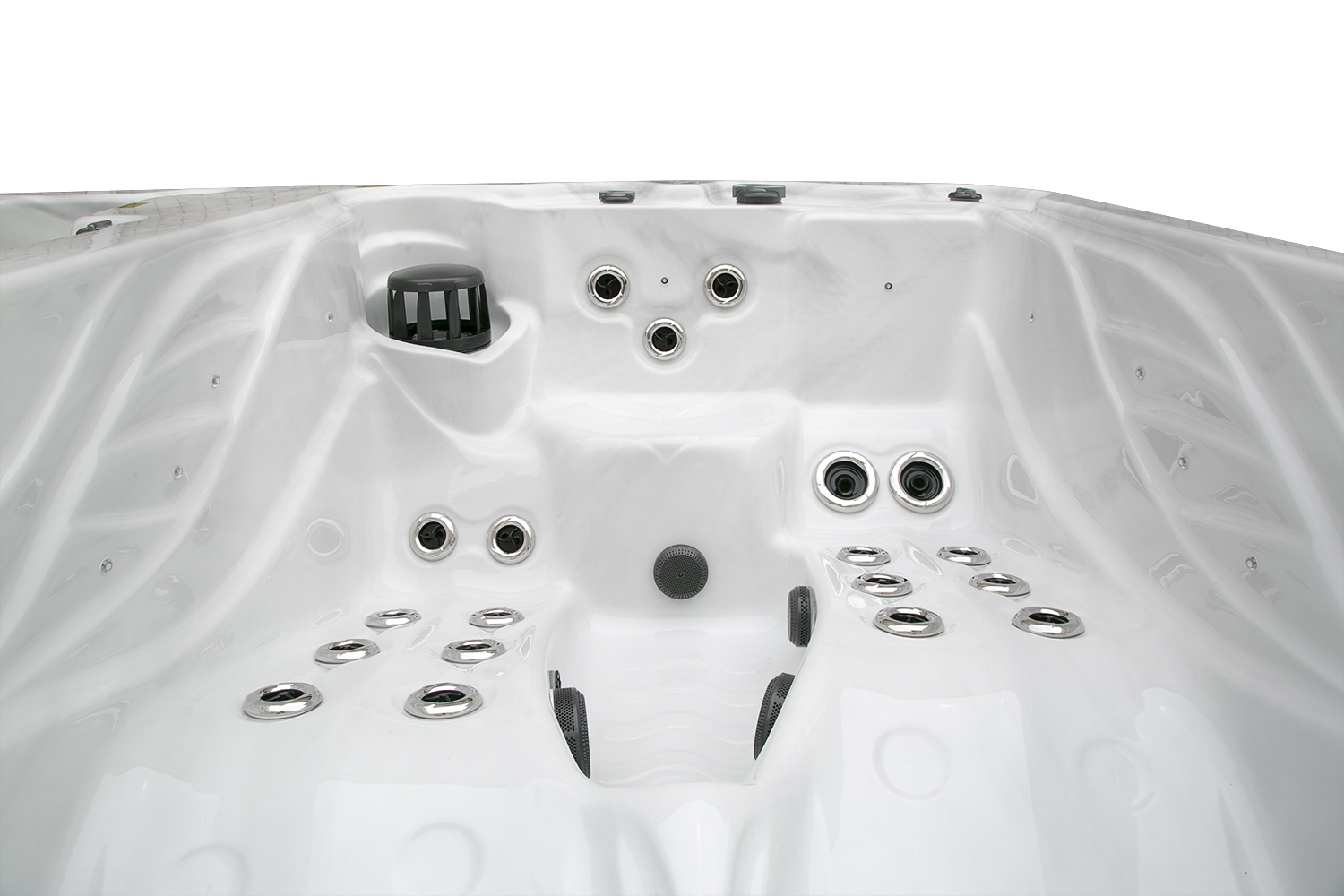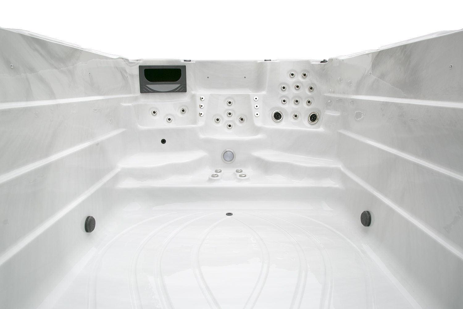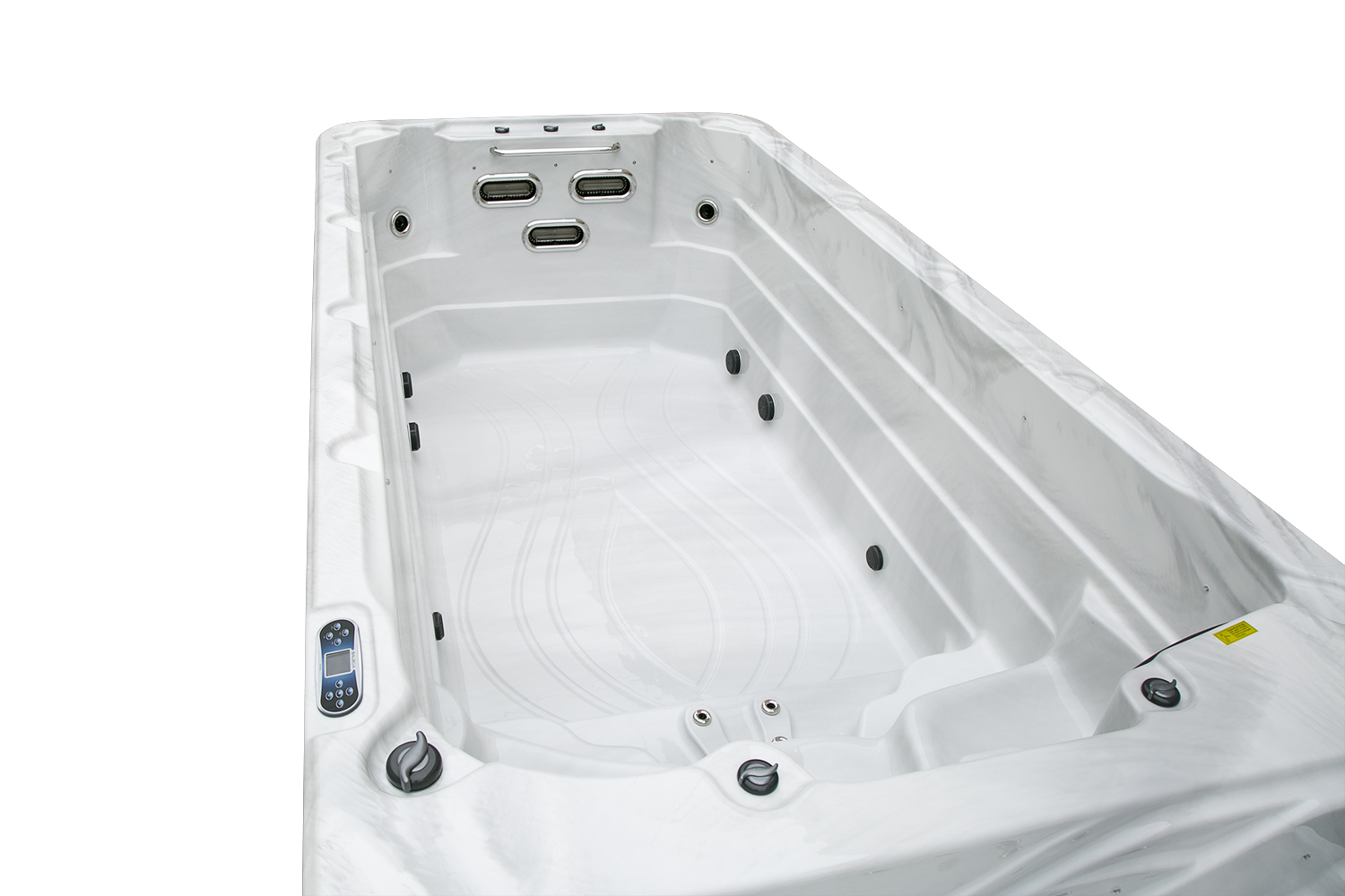 Два гидромассажных насоса по 1,5 кВт в сочетании с 76 форсунками обеспечивают интенсивный массаж и эффективную гидродинамику в спа-зоне. Мощный водяной насос на 2,9 кВт и форсунки противотока нового поколения создают идеальные условия для занятий плаванием и тренировок на воде в основной части бассейна.